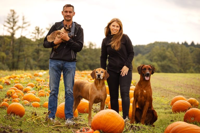 Wir sind eine naturverbundene Familie mit zwei inzwischen erwachsenen Kindern, die gemeinsam mit unseren Ridgebacks aufgewachsen sind. Bei uns leben Mensch und Tier im engen Miteinander: Neben unseren Hunden gehören auch zwei Maine Coons, ein stolzer Siam-Kater, eine kleine Schar US Silkie-Hühner und Pferde zu unserem Zuhause.